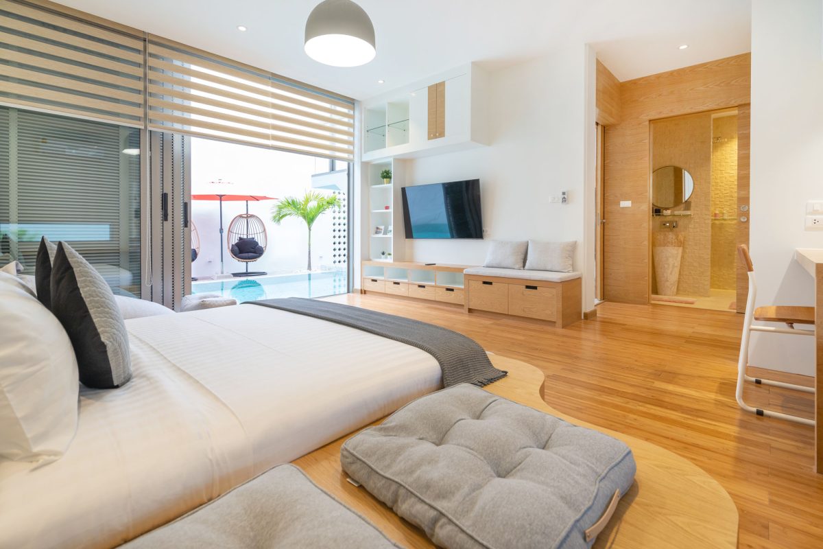 The Bonsai House is a 2-storey pool villa with 300 sq.m. of living area set on 250 sq.m. of land area. This property is part of the “Elements by the Wallaya” complex, a gated community of 9 villas, allowing for peace and privacy. The villa has 3 bedrooms with king-sized beds, and each bedroom has its own bathroom. The large private pool is 7×4 metres and 1.5 metres deep, and has a waterfall feature.